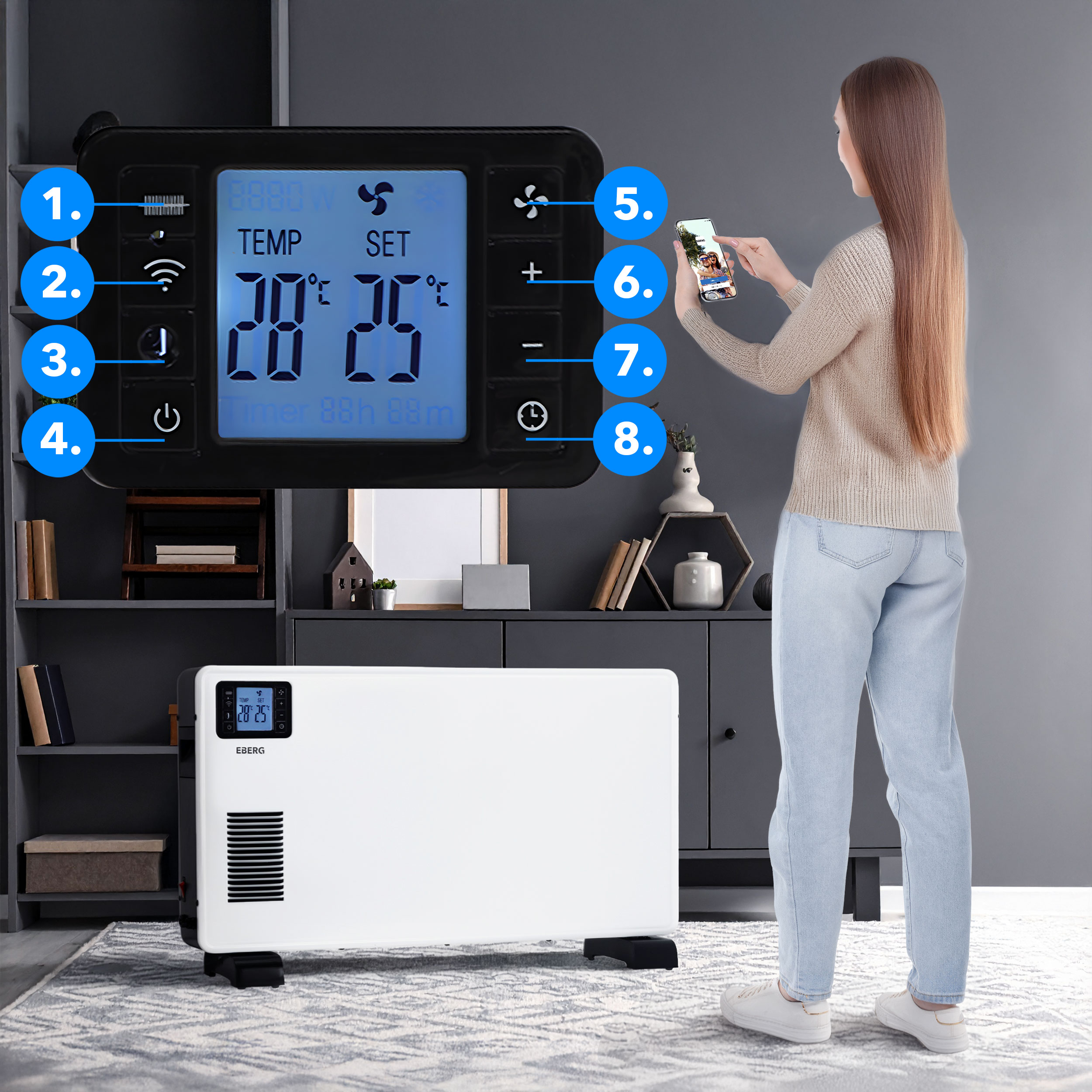 Zainstaluj aplikację EBERG® i kontroluj wszystkie funkcje grzejnika z dowolnego miejsca. Masz kilka urządzeń EBERG® z modułem WiFi? Steruj nimi wszystkimi z jednej aplikacji – to ogromne ułatwienie przy programowaniu i codziennym użytkowaniu